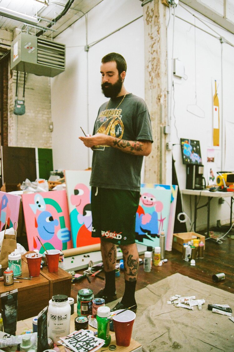 Jack Moore is a painter and designer living in Brooklyn, NY. In 2015 he graduated from the University of Vermont with a BA in Political Science and History. Shortly after graduating, Jack fully immersed himself in the arts. Since then, he has independently curated shows such as, “Sensory” (New York, NY) and “Steak Frites” (Shanghai, China.) More so, Jack has curated four shows for Superchief Gallery. The last, “Greener” (2019), being featured in Juxtapoz Magazine. Last year, Jack curated “3 AM” for Spring Break. In regards to design , Jack has worked with brands such as Urban Outfitters, Vans and Converse.